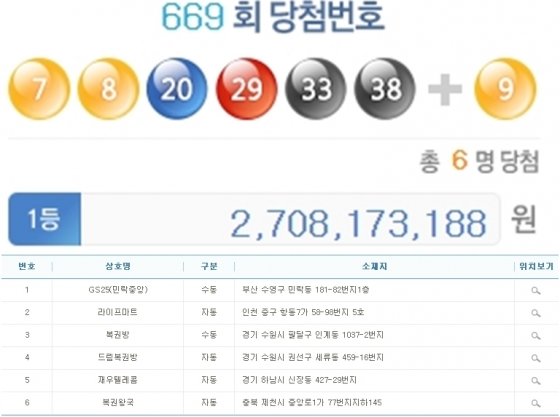 27억씩 로또 669회 1등 명당 6곳 어디 머니투데이